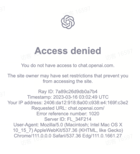 3,登陆ChatGPT Plus出现“Access denied”错误