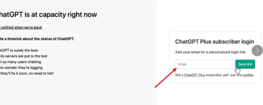 4,打开ChatGPT官网提示“ChatGPT is at capacity right now”